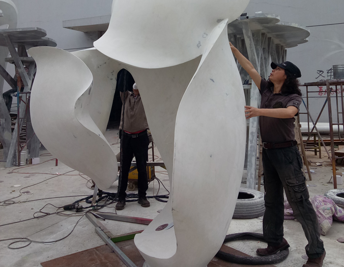 南京先登雕塑大型不銹鋼雕塑作品《天使之吻》制作完成